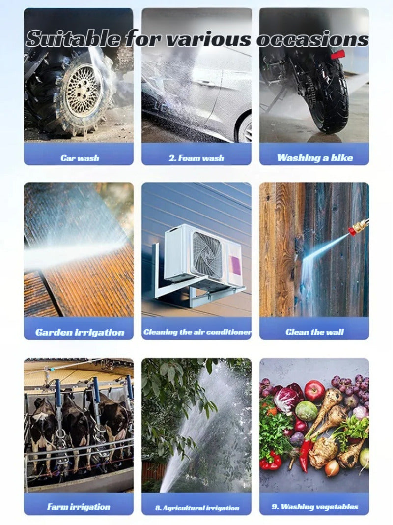 No se trata solo de lavar autos, tambien podría ser Jardines, terrazas, bicicletas, muebles de patio o incluso fachadas pueden quedar relucientes gracias a su diseño portátil y boquillas ajustables para diferentes tipos de chorros. Una sola herramienta para muchas tareas.